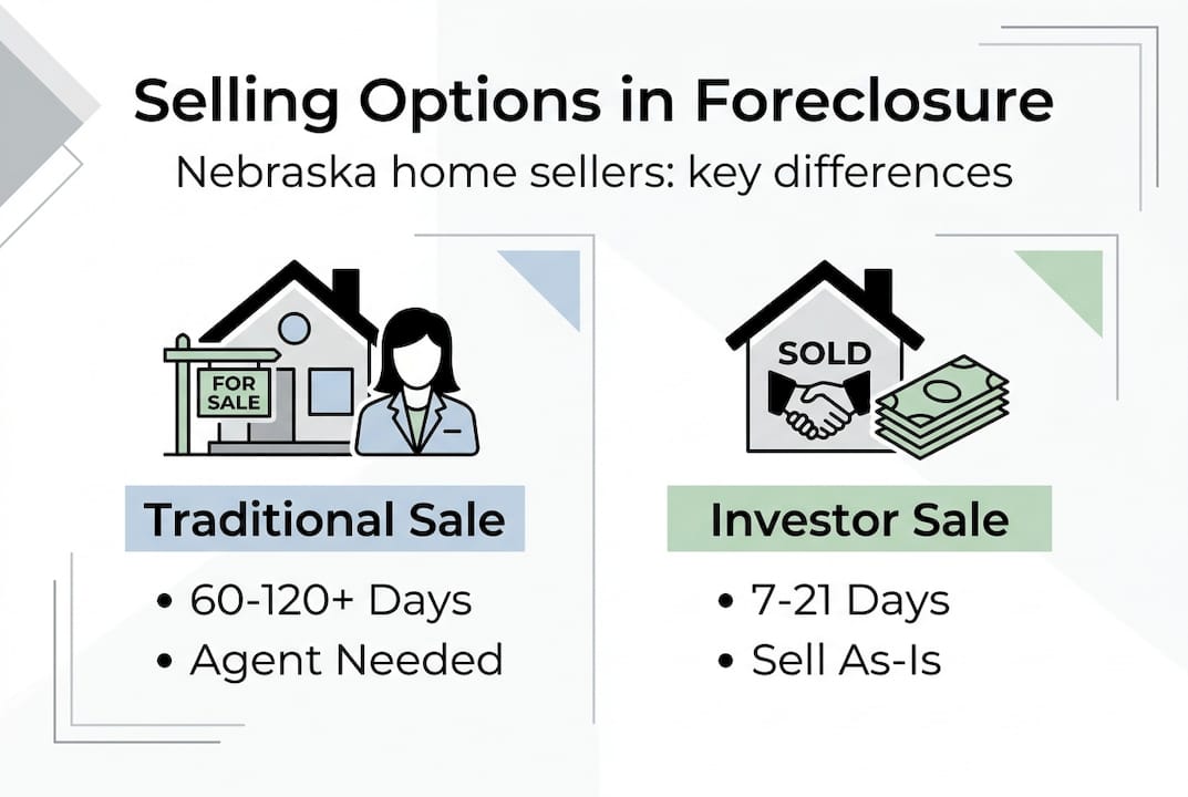 Investor sales offer speed, cash certainty, and as-is purchase terms, which is especially valuable for Nebraska homeowners who can't afford repairs or a long listing timeline.